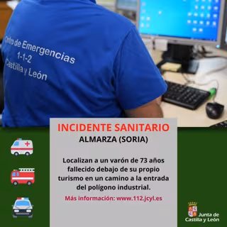 El 1-1-2 da aviso de este incidente a los Bomberos de Soria y al centro coordinador de urgencias (CCU) de Emergencias Sanitarias - Sacyl, desde el que se envió una UVI móvil.