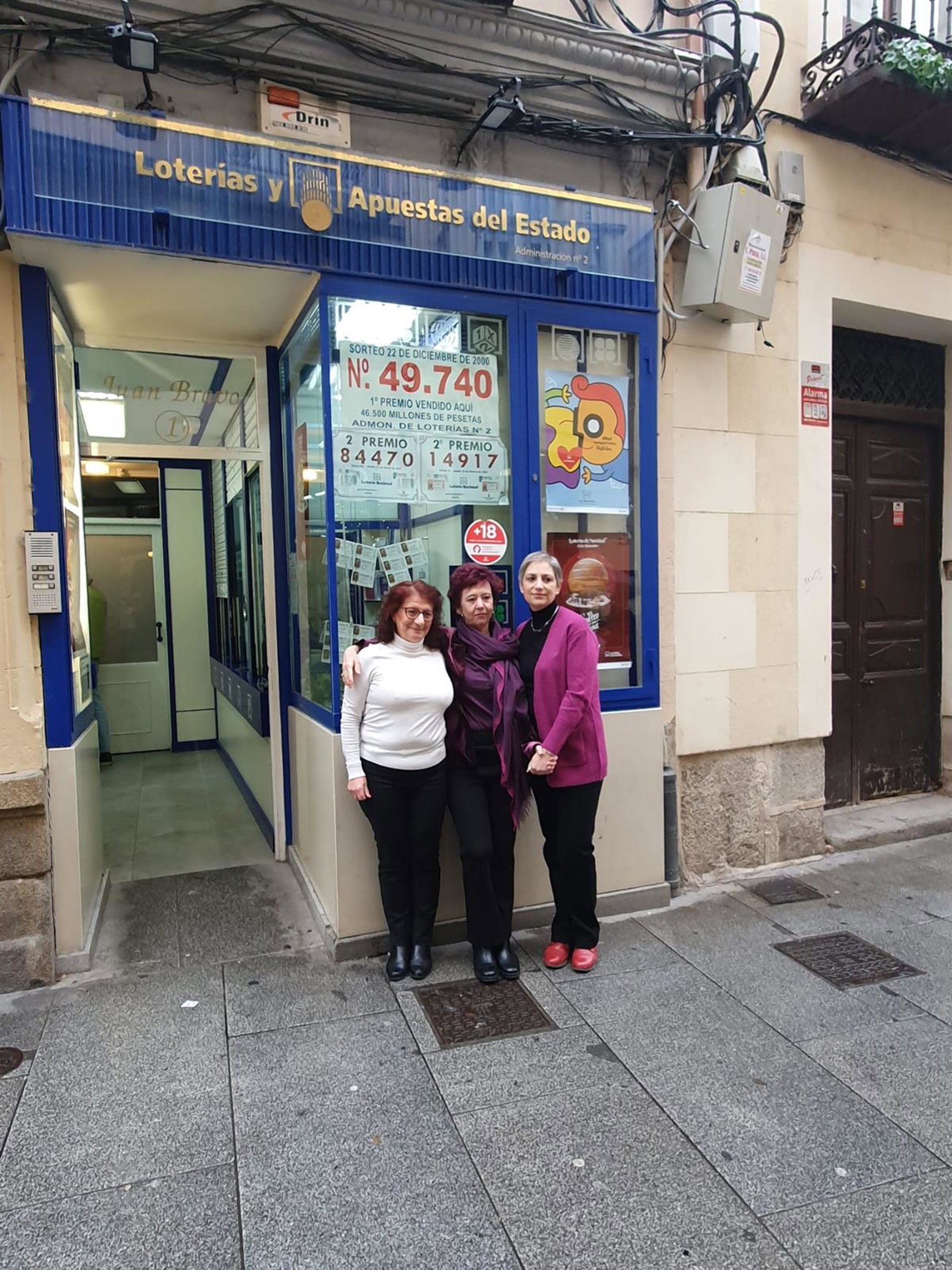 La administradora, Ana Herranz, e Irene Herrera y Alicia García, empleadas de la oficina lotera ubicada en Juan Bravo, 1, han recordado que "aquel día de 200 era como éste, frío y nuboso, y el premio también fue madrugador".