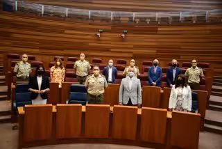 El general José Rivas ha mantenido una reunión con el presidente de las Cortes y, posteriormente, se ha realizado una foto de familia en el Hemiciclo junto con la vicepresidenta segunda de la Mesa de las Cortes, Ana Sánchez, y la secretaria tercera, Marta Sanz, además de la viceportavoz del Grupo Parlamentario Socialista, Patricia Gómez; Ramiro Ruiz Medrano, en representación del Grupo Parlamentario Popular; y el portavoz del Grupo Parlamentario de Ciudadanos, David Castaño.