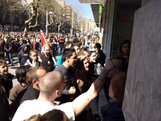 Durante el recorrido, varios grupos de los asistentes han ido obligando a cerrar negocios que permanecían abiertos. Incluso, en la avenida de Mirat, han tenido que intervenir fuentes policiales cuando un empresario se negaba a bajar la trapa de su negocio de telefonía móvil.