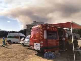 Puesto de Control de Bomberos de la Comunidad de Madrid para extinguir los fuegos de Miraflores de La Sierra y de San Ildelfonso de la Granja cerca del Parque Natural de la Sierra de Guadarrama. - 112 COMUNIDAD DE MADRID