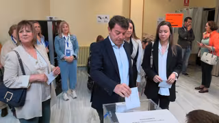 El presidente de la Junta de Castilla y León y del PP autonómico, Alfonso Fernández Mañueco, ha votado pasadas las 12.00 horas en el colegio electoral de la Plaza de la Constitución en Salamanca, acompañado por su mujer y sus hijas, y desde donde ha animado a los vecinos a acercarse a las urnas, pues, según ha resaltado, "con su voto, con su participación, desde luego, fortalecen la democracia".