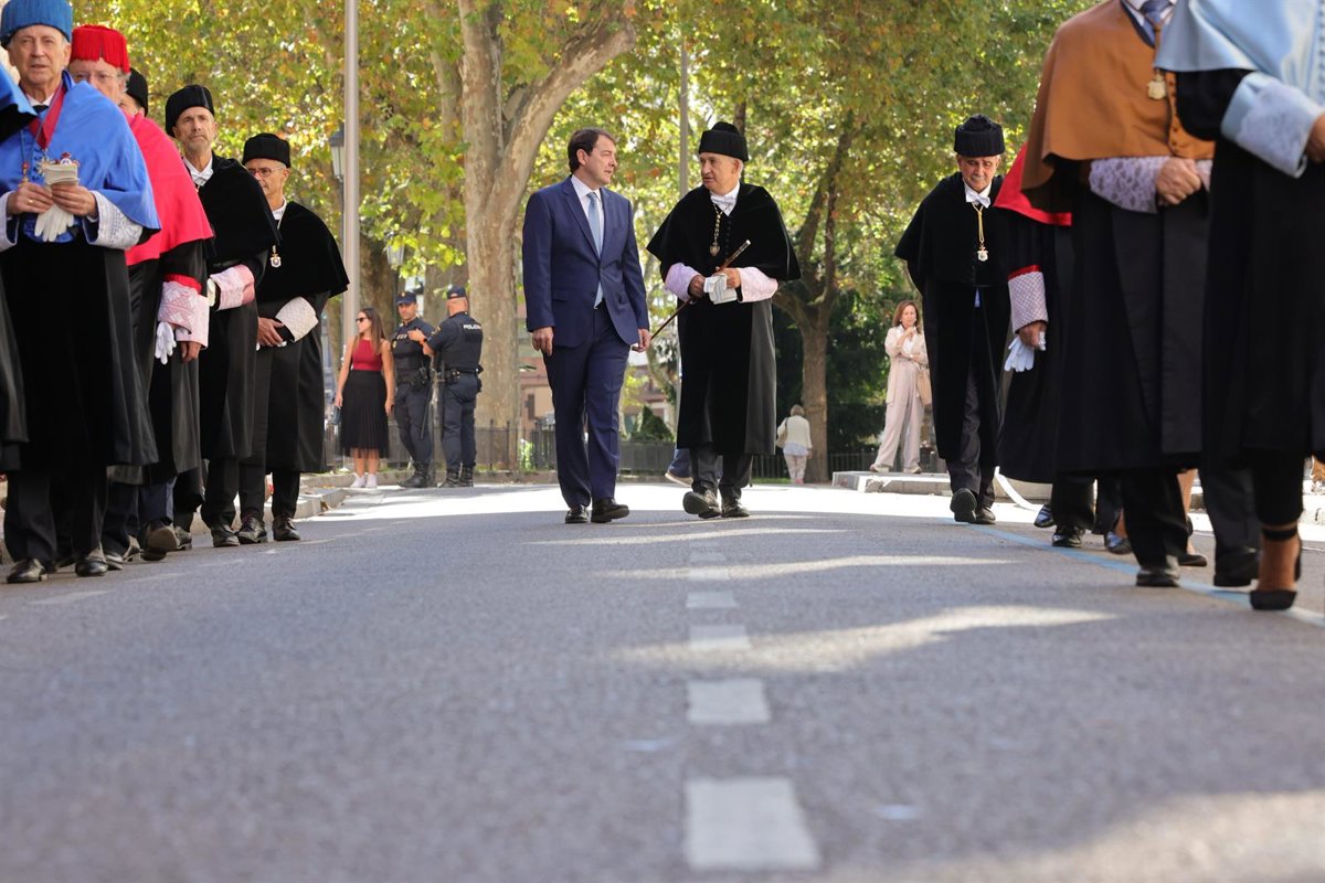 Mañueco y Antonio Largo junto a la comitiva universitaria que se dirige al Paraninfo de la UVA - JCYL