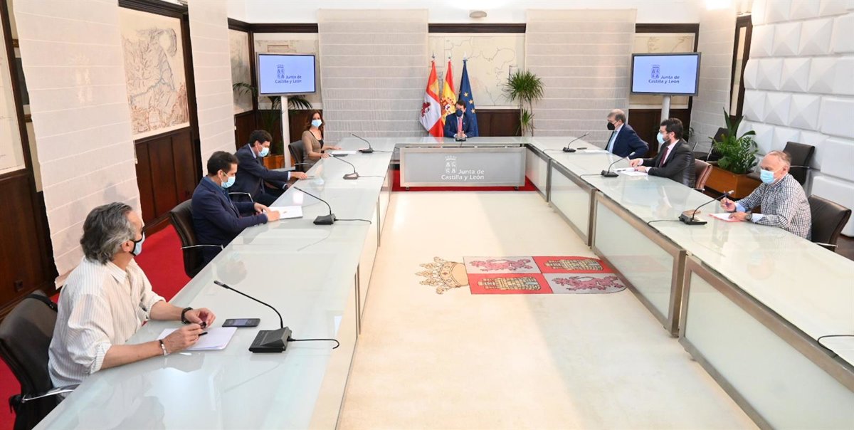 Dentro de la ronda de reuniones preparatorias de la próxima Conferencia de Presidentes autonómicos, el jefe del Ejecutivo autonómico ha recibido a los agentes sociales y económicos que conforman el Diálogo Social en la Comunidad (CCOO, UGT y CEOE CYL), a los representantes de las organizaciones profesionales agrarias (Asaja, UPA-COAG y UCCL) y a la presidenta de la Federación Regional de Municipios y Provincias, Ángeles Armisén.