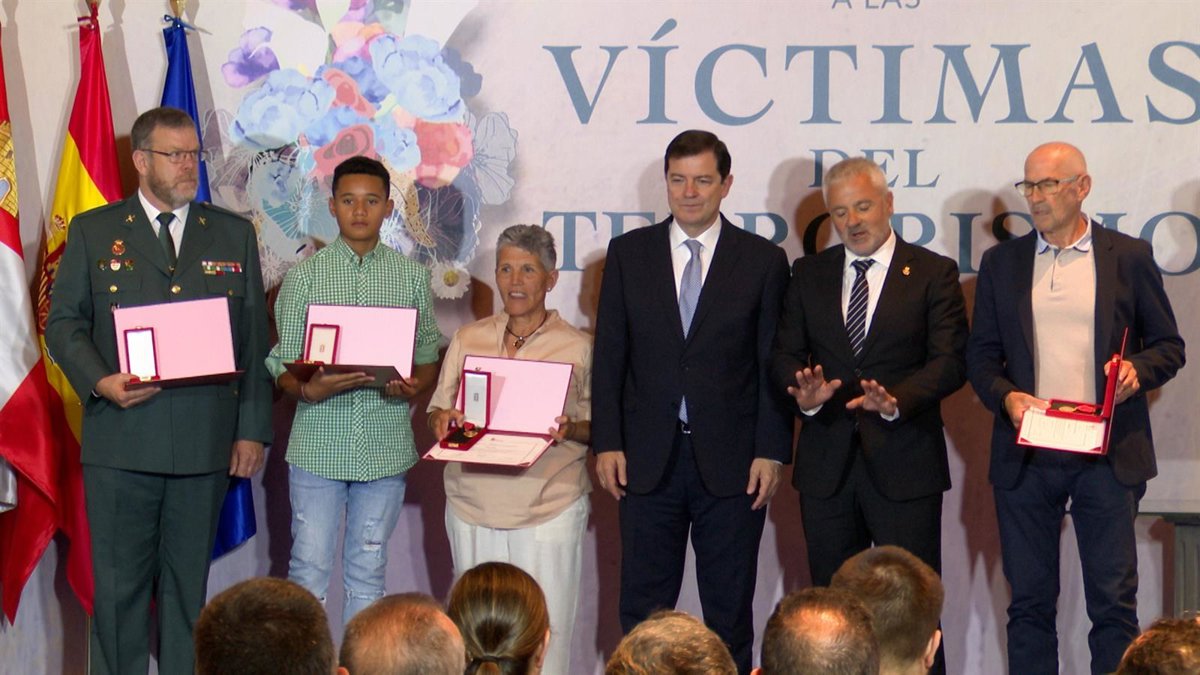 Fernández Mañueco ha hecho entrega de medallas en reconocimiento a víctimas y familiares, entre ellos Evaristo Antón Zurrón Arevalo, Sebastián Nogales Lozano, Alexander y Lucas Morán Silva, Alejandra María Concepción Samaniego Pérez, Francisco Sánchez Blázquez, María Elisa Martín Gómez, Amanda y Javier Sebastián Nogales Martín y Casimiro Sánchez García, representado por su hijo. "Recibid nuestro reconocimiento, nuestro cariño y, sobre todo, nuestra gratitud. Castilla y León siempre estará a vuestro lado", ha manifestado.