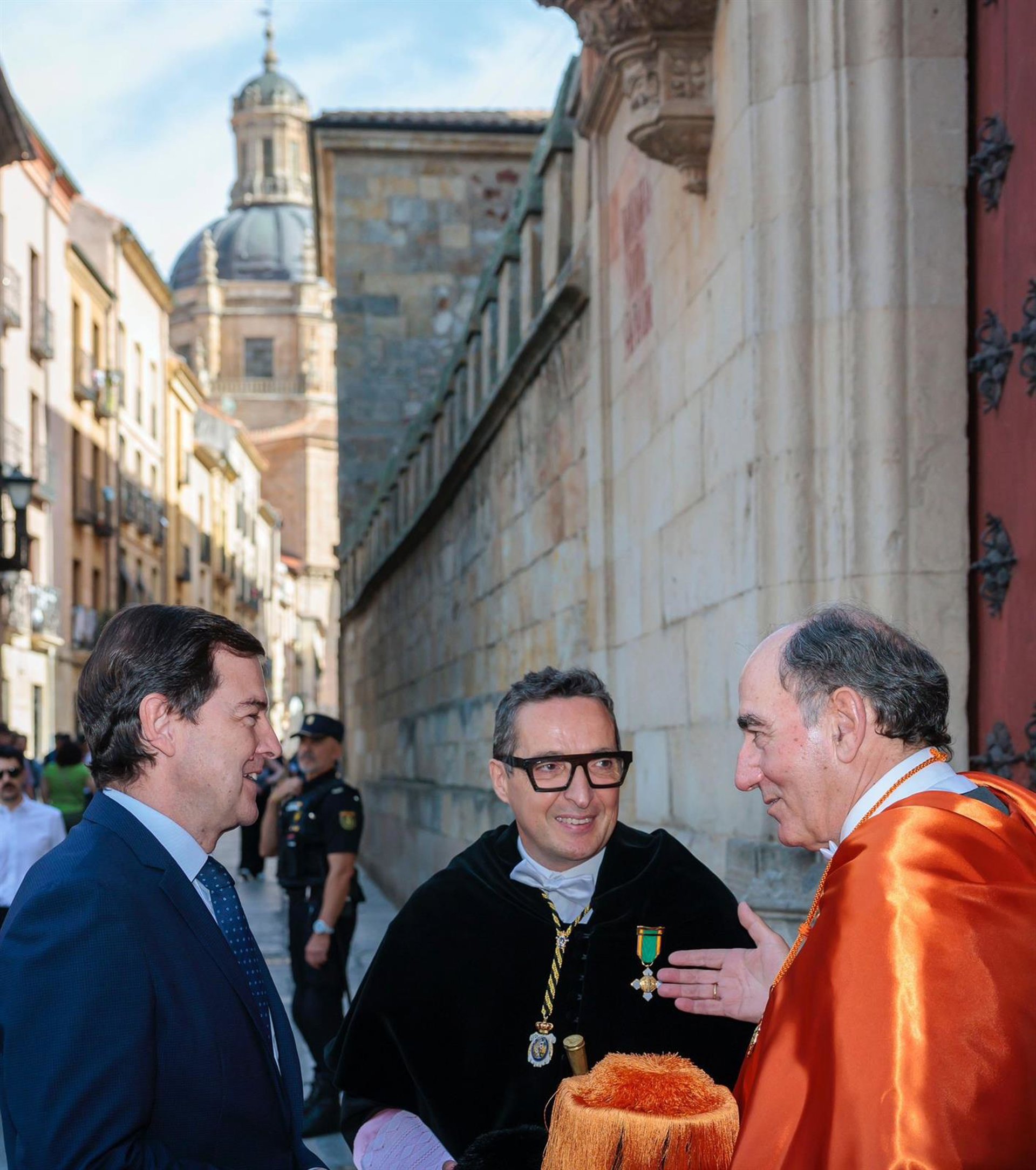 Malueco (I) junto al rector de la USAL y el presidente de Iberdrola antes de inaugurar el curso universitario en Salamanca. - AEP