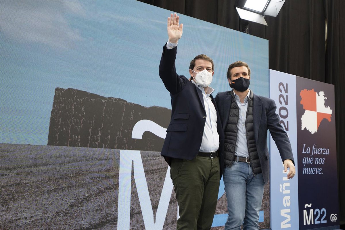Acto público del PP con motivo de las elecciones autonómicas de Castilla y León, con la presencia de Pablo Casado, presidente del PP y Alfonso Fernández Mañueco - EUROPA PRESS/CARLOS MATEO