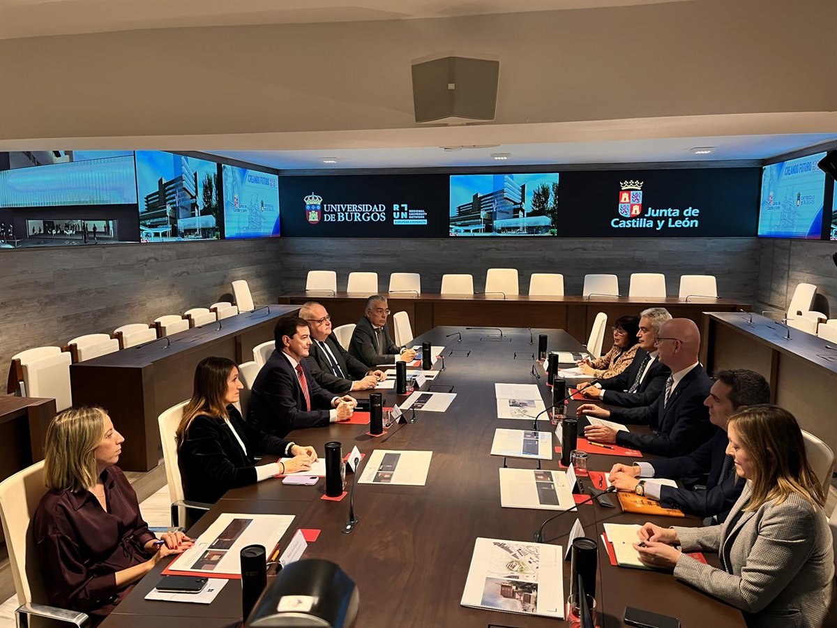 Mañueco (I) en la reunión que ha mantenido con el rector y personal de la UBU para abordar la implantación de los estudios de Medicina el próximo año. - EUROPA PRESS
