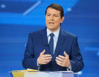El candidato del PP a la presidencia de Castilla y León, Alfonso Fernández Mañueco, participa en el ‘Debate decisivo’, en CyL TV, - Europa Press/Photogenic/Claudia Alba. POOL - Europ