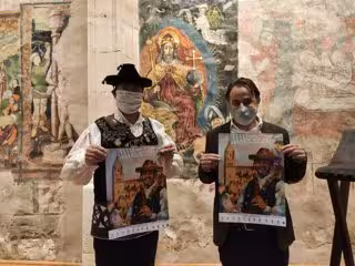 Ángel Rufino de Haro 'el Mariquelo' (d), junto al concejal de Turismo del Ayuntamiento de Salamanca, Fernando Castaño (i), en el Convento de las Claras. - EUROPA PRESS