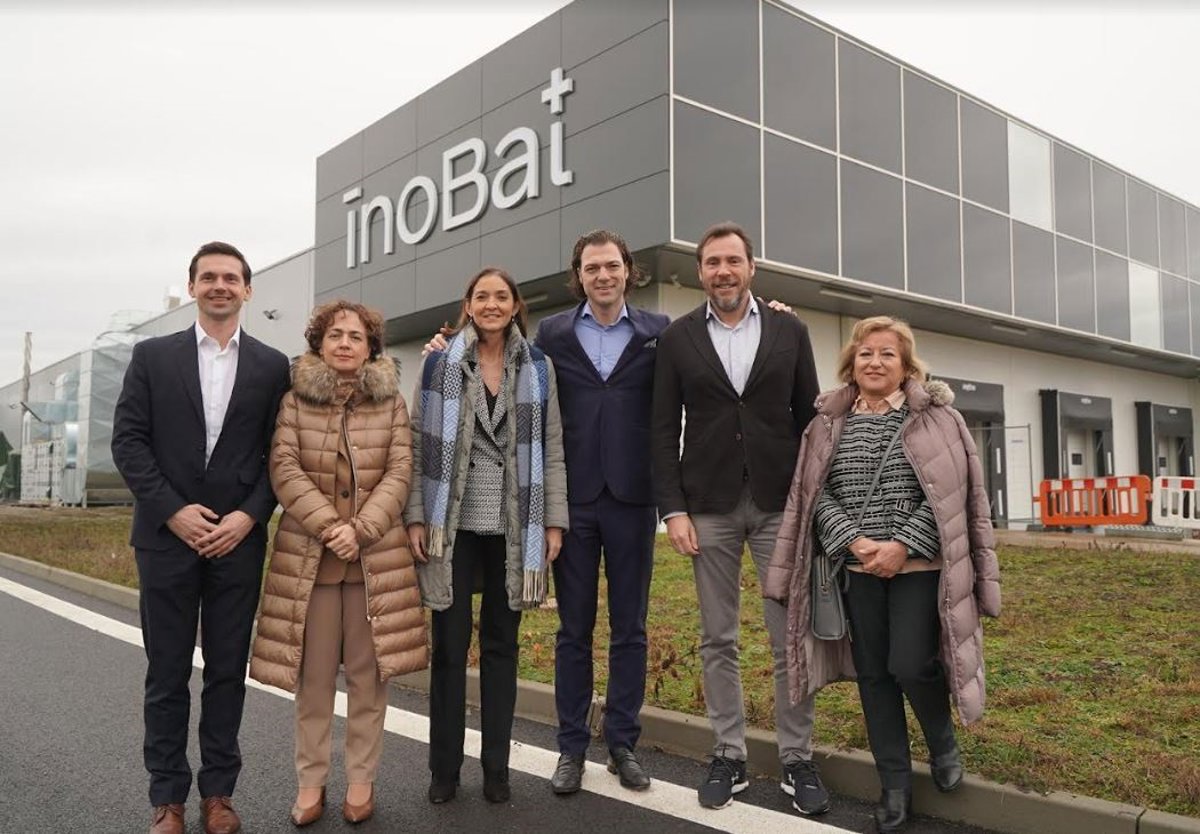 La ministra de Industria, Comercio y Turismo, Reyes Maroto (tercera por la izquierda); y el alcalde de Valladolid, Óscar Puente (segundo por la derecha), junto a representantes de Inobat en las instalaciones de la compañía en Voderady (Eslovaquia). - AYUNTAMIENTO DE VALLADOLID