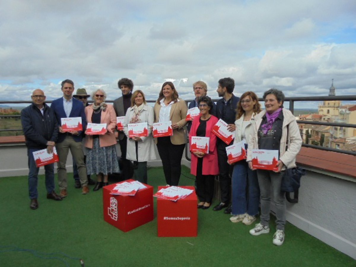 La candidata socialista, Clara Martín (centro, chaqueta beig), con buena parte del resto de su candidatura, en la presentación del programa Electoral - EUROPA PRESS