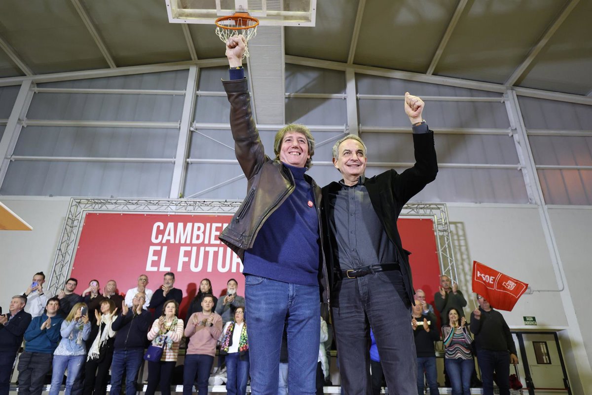 El candidato del PSOE, Carlos Martínez (i) y el expresidente del Gobierno José Luis Rodríguez Zapatero (d), durante un acto público, en el Pabellón Luis Vives, a 6 de marzo de 2026, en León, Castilla y León (España). - Fernando Otero - Europa Press
