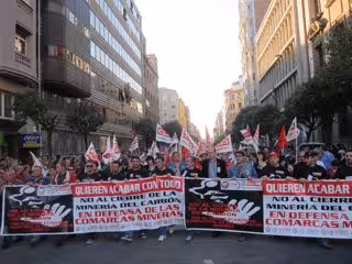 Precedidos por una pancarta en la que podía leerse 'Quieren acabar con todo. No al cierre de la minería de carbón. En defensa de las cuencas mineras', los miles de leoneses han recorrido las principales calles de la ciudad para terminar en la plaza de la Inmaculada donde la escritora berciana, Carmen Busmayor, ha leído un manifiesto a favor del carbón autóctono.