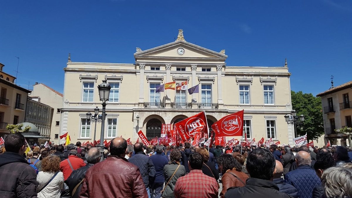 El acto más numeroso ha tenido lugar en Valladolid, donde unas 4.500 personas según fuentes policiales y 10.000 según la organización han tomado el centro de la capital encabezados por los líderes regionales de UGT y CC.OO, Faustino Temprano y Ángel Hernández, quienes cerraron el acto con sendas intervenciones en la Plaza Mayor de la capital vallisoletana.