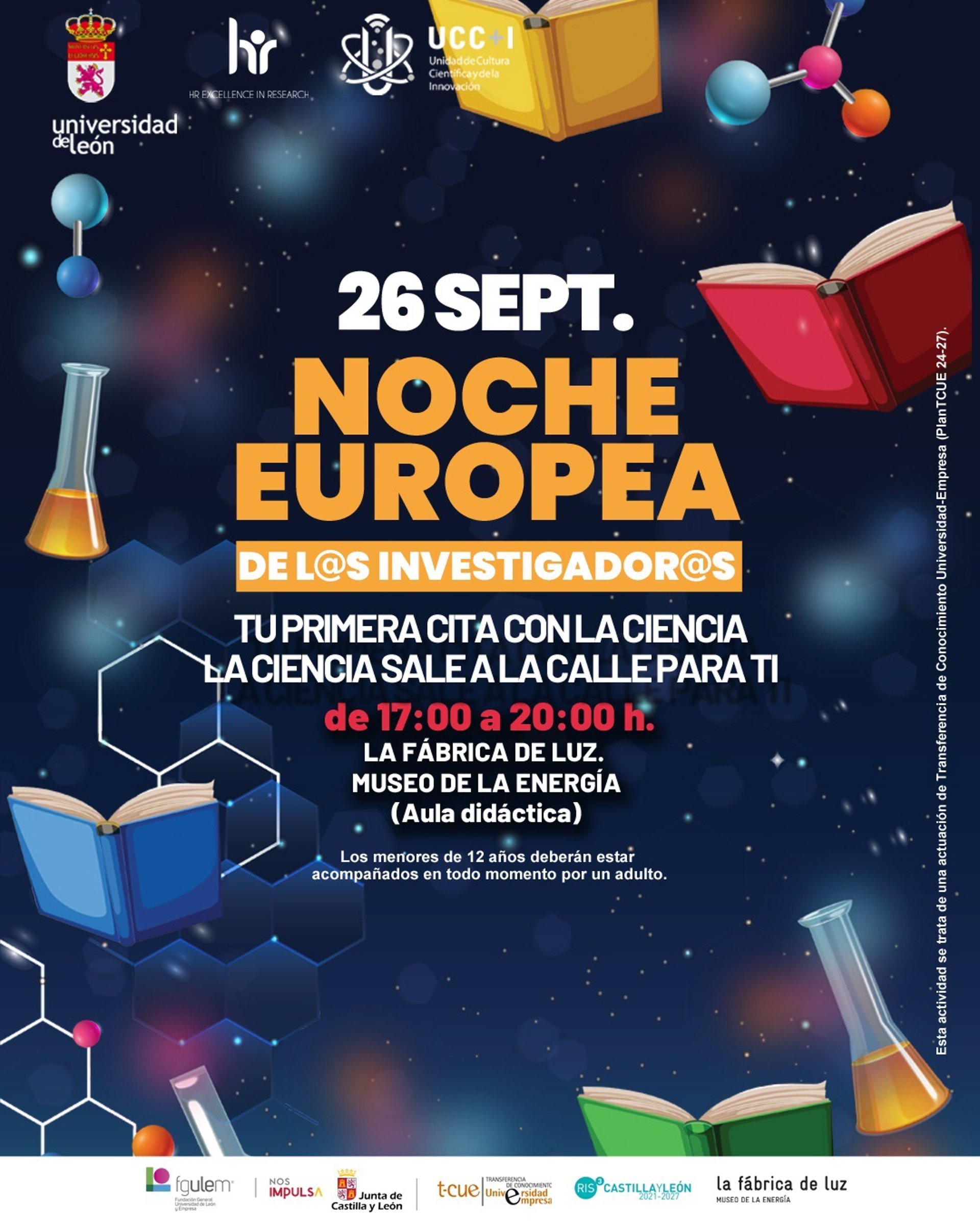 La Universidad de León se suma un año más a la Noche Europea de los Investigadores e Investigadoras, una cita internacional que tendrá lugar el próximo viernes 26 de septiembre y que busca acercar la ciencia y la innovación que se desarrollan en el seno de la Institución universitaria a la sociedad de una manera "participativa, cercana y sorprendente".