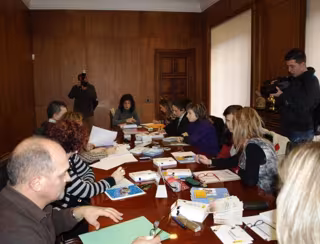 La edil de Bienestar Social, Mujer y Escuelas Infantiles, Teresa Gutiérrez, presidió la reunión en el Consistorio de San Marcelo, en la que se puso sobre la mesa la ejecución actual de los programas de protección, desarrollados por el Gobierno municipal, la Policía Nacional y Cruz Roja.