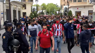 A este primer grupo se ha unido, además, una segunda remesa de otros 400 hinchas que ha llegado a las 13.00 horas en el tren procedente de Madrid a la capital del Pisuerga, donde les aguardaba un dispositivo policial que ha escoltado a la comitiva en su recorrido desde la estación de Campo Grande, pasando por Acera Recoletos y la céntrica calle Santiago hasta su destino en la Plaza Mayor.