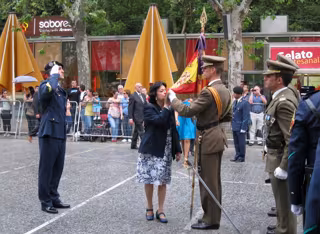 Posteriormente, se ha realizado el juramento o promesa ante la bandera para dar paso a una breve alocución del coronel jefe del Grupo de Seguridad de la Agrupación del Cuartel General del Ejército del Aire, Luis Á. Ruiz Nogal, quien ha felicitado a las personas que han jurado bandera, a las que ha dado la enhorabuena y ha recordado que el patriotismo, el deber y el honor no son sólo de las instituciones castrenses sino de todos.