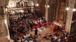 Más de quinientas personas se congregaron este lunes en la Ermita de las Fuentes de San Juan del Olmo (Ávila) para presenciar la tercera edición del 'Concierto a la luz de las velas', que corrió a cargo de La Capilla de Música Pérez Gaya, nueve músicos con violines y contrabajos, Franciso Javier López, como organista, Raquel Albarrán, como vocalista, y Carlos José Martínez, como director, quienes interpretaron obras de Bach, Mozart y Pergolesi.