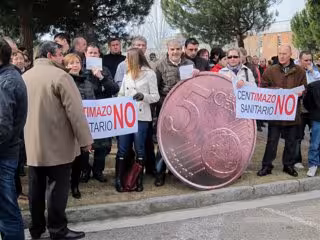 Más de un centenar de empresarios y autónomos de Castilla y León perteneciente diecinueve colectivos afectados por el llamado 'céntimo sanitario' se ha concentrado esta mañana ante las puertas de la Consejería de Hacienda para exigir a su titular, Pilar del Olmo, que dé marcha atrás en la aplicación de dicho impuesto sobre hidrocarburos que, en su opinión, supondrá la "puntilla" y la ruina de miles de negocios y la destrucción, sólo en el sector de gasolineras, de más de 2.000 puestos de trabajo.
