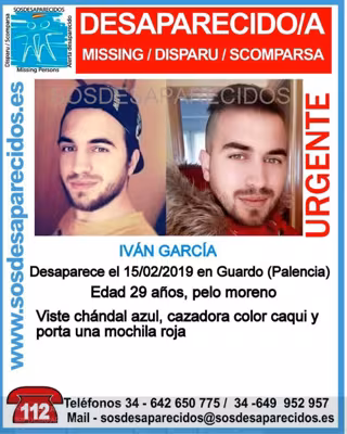 El operativo de búsqueda con voluntarios del joven Iván García, desaparecido este viernes en la localidad palentina de Guardo, se ha suspendido tras haber buscado por toda la localidad y no haber encontrado ningún indicio, si bien la Guardia Civil continuará apoyado por los perros y el helicóptero, señala Subdelegación del Gobierno a Europa Press.