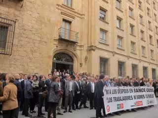 Más de un centenar de trabajadores del Banco CEISS se han concentrado a las puertas de la sede central de la entidad en Salamanca, donde han criticado la "inmovilidad" de la dirección para rebajar el número de despidos o buscar otras soluciones.