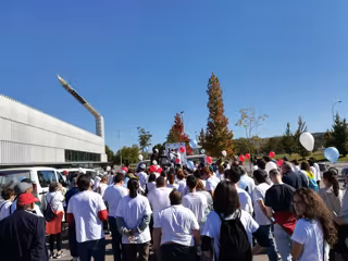 La marcha que se ha llevado a cabo desde el centro hasta el Nuevo Estadio de la Balastera, con participación de varios cientos de personas, entre usuarios, residentes, familiares, voluntarios y personal del centro.