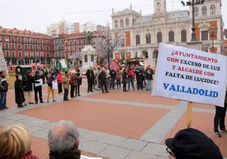 Más de medio centenar de personas se han manifestado este sábado en la Plaza Mayor de Valladolid para protestar por la situación social y política de la capital, por la labor del Equipo de Gobierno y la gestión del alcalde, Francisco Javier León de la Riva.