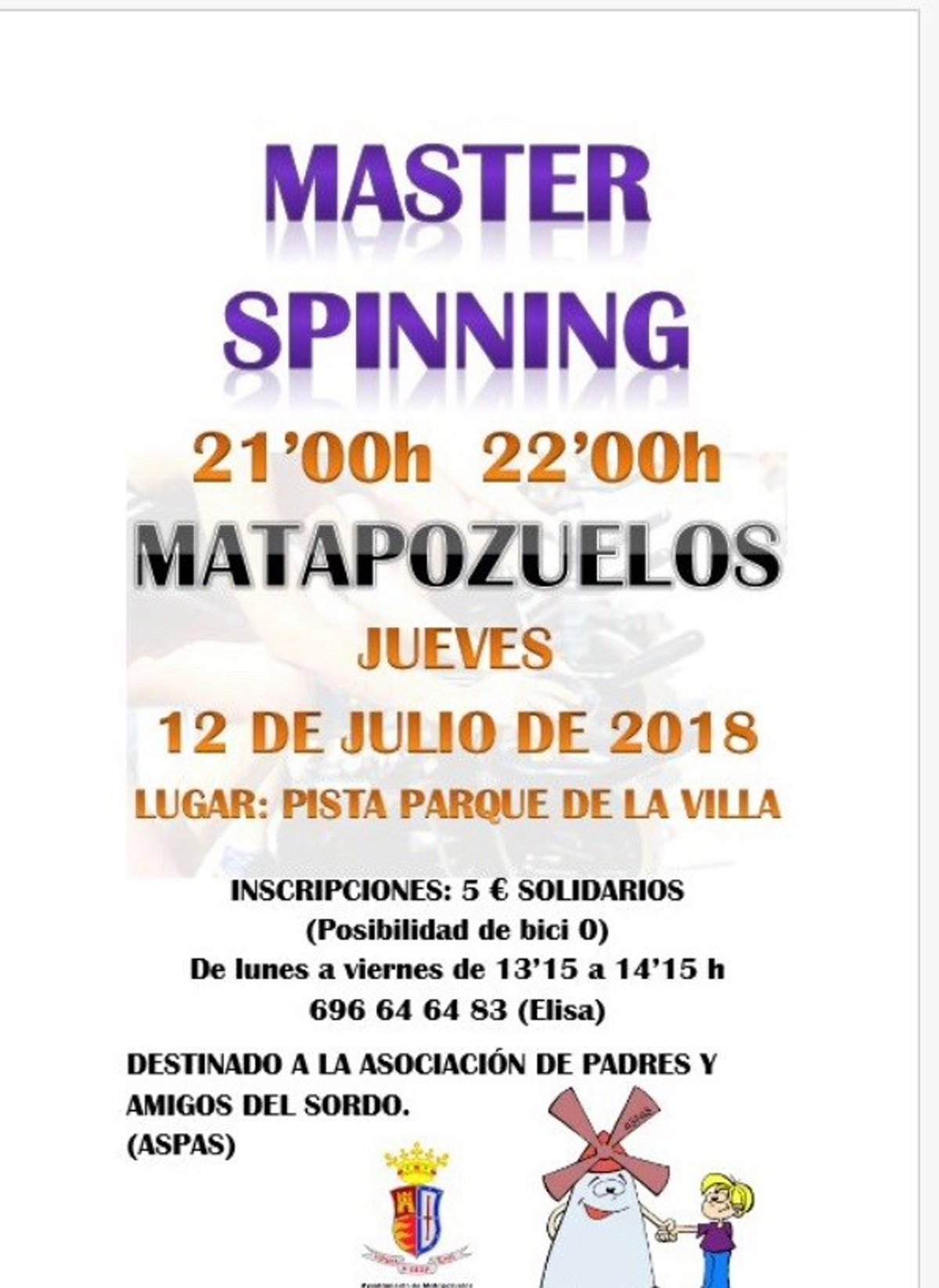 La localidad vallisoletana de Matapozuelos acogerá este jueves una masterclass de Spinning, con cerca de 60 bicicletas, con el fin de recaudar fondos para la Asociación de Padres y Amigos del Sordo (Aspas), según han informado a Europa Press fuentes de la organización.