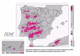 Además, en Soria están previstas temperaturas máximas de 35 grados en el Sistema Central y en Valladolid habrá máximas 38 grados durante la segunda mitad del día mientras que en Zamora se alcanzarán los 34 grados en Sanabria y los 38 grados en la meseta también durante la segunda mitad de este lunes.