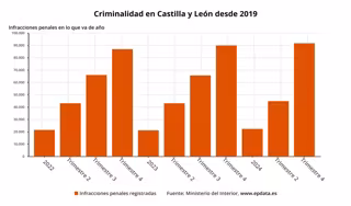 Así, la criminalidad cerró 2024 con un incremento del 2 por ciento en Castilla y León --séptima autonomía en la que más creció--frente a una caída nacional del 0,3 por ciento de media. Las subidas más notables en el ámbito autonómico se han registrado en los delitos relacionados con sustracción de vehículos, robos con fuerza en domicilios y otros relacionados con la libertad sexual.