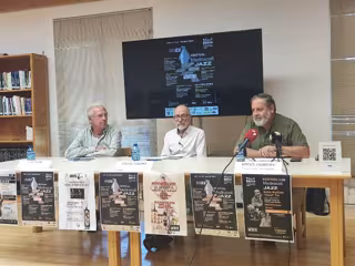 El presidente de la Fundación Dearte, Miguel Tugores, junto al director del festival Medinaceli Jazz, Juan Nuche, y el pianista y el director del septeto Randpolph Wilis Septet, Miguel Sacristán, que actuará el martes 11, han presentado la nueva edición.