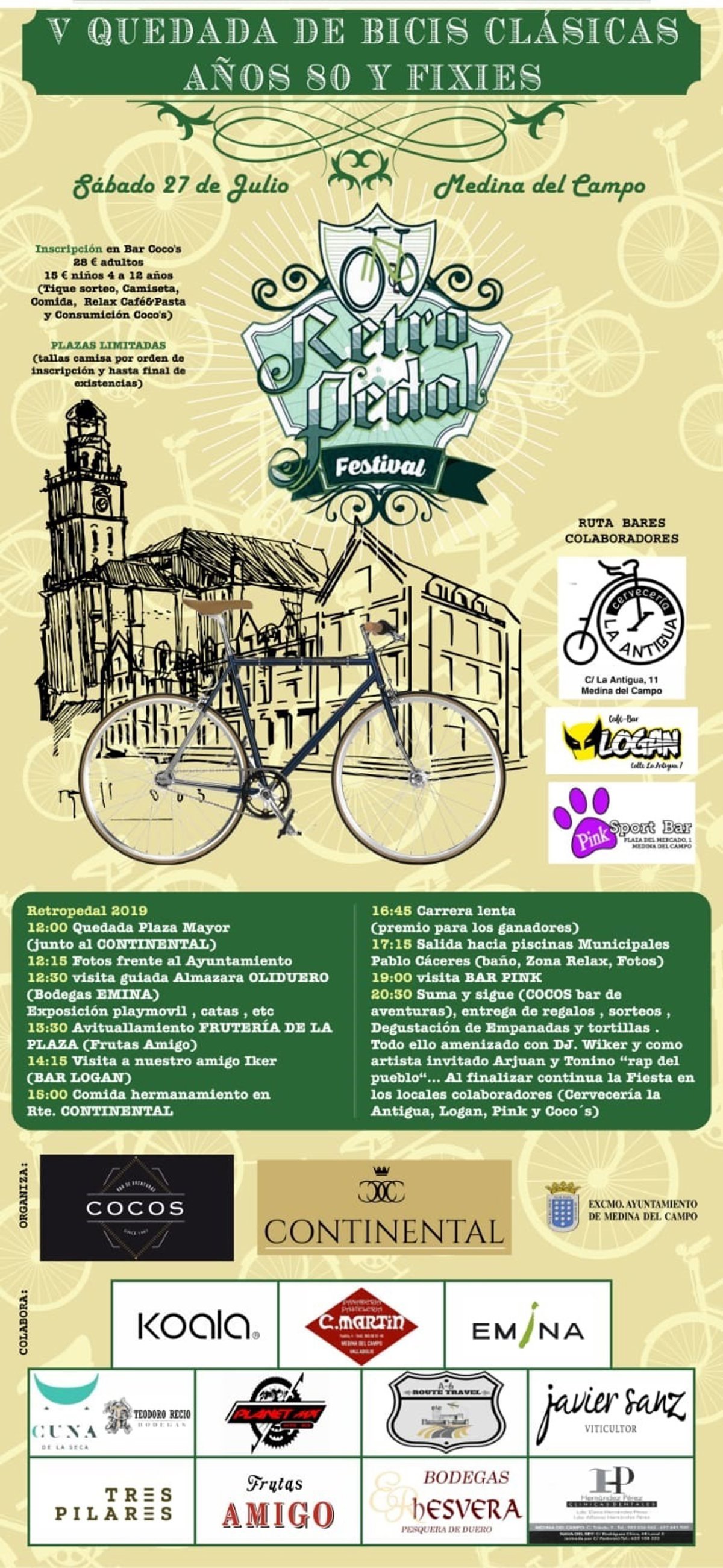 Cerca de medio centenar de aficionados participará este sábado en Medina del Campo (Valladolid) en la quinta 'Quedada de Bicis Clásicas de los Años 80 y Fixies' que está organizada por el Ayuntamiento de la localidad y diferentes establecimientos comerciales y hosteleros.