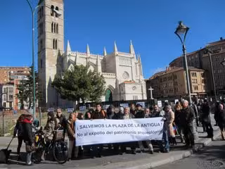 En torno a medio centenar de personas se ha concentrado este sábado en la Plaza de la Antigua de Valladolid para protestar contra el proyecto del aparcamiento subterráneo que el Ayuntamiento tiene previsto construir en la zona y para pedir excavaciones a mayor profundidad, ante la posibilidad de que se hallen nuevos restos arqueológicos.