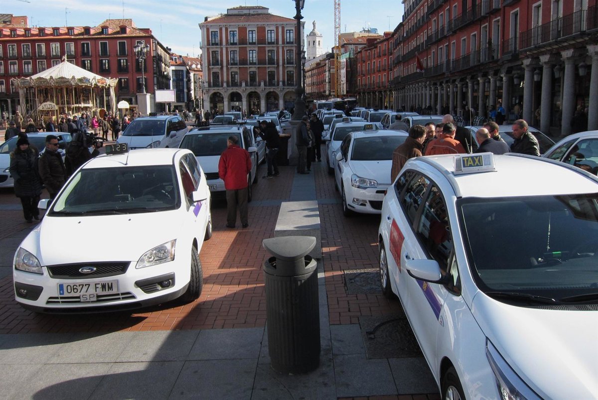 Medio centenar de taxistas de Valladolid ha acudido con sus coches a la Plaza Mayor de la capital para manifestar sus quejas por la "falta de información" a cerca del proyecto de área común de prestación de servicio en la ciudad y los municipios del alfoz que se aprobó en la Comunidad Urbana (Cuva) hace unas semanas.
