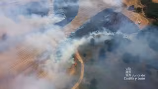 En el lugar trabaja un dispositivo formado por dos técnicos, tres agentes medioambientales, un helicóptero de Pradoluengo, una brigada, un bulldozer, dos autobombas, dos cuadrillas de tierra, una dotación de bomberos municipales y un tractor, que sobre las 19.27 horas de este miércoles lograron controlar las llamas.