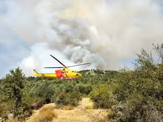 Once medios aéreos y algo más de un centenar de efectivos de la Junta, apoyado por el Ministerio de Agricultura, Pesca y Alimentación, junto a Protección Civil, Bomberos de Segovia, Patrimonio Nacional, Guardia Civil y otros medios, trabajan para sofocar el incendio en nivel 1 de peligrosidad del Infocal en La Gran de San Ildenfoso (Segovia) y que podría haber afectado ya a unas 40 hectáreas.