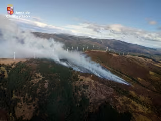 Medios aéreos y terrestres trabajan en la extinción de un incendio que se ha declarado en la localidad de Mazueco, perteneciente a Villoruebo (Burgos), según la información del perfil de la Junta en Twitter @naturalezacyl recogida por Europa Press.