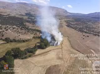 Un dispositivo formado por medios terrestres y aéreos trabaja, a estas horas, en la extinción de un incendio que afecta al término municipal abulense de Solosancho.
