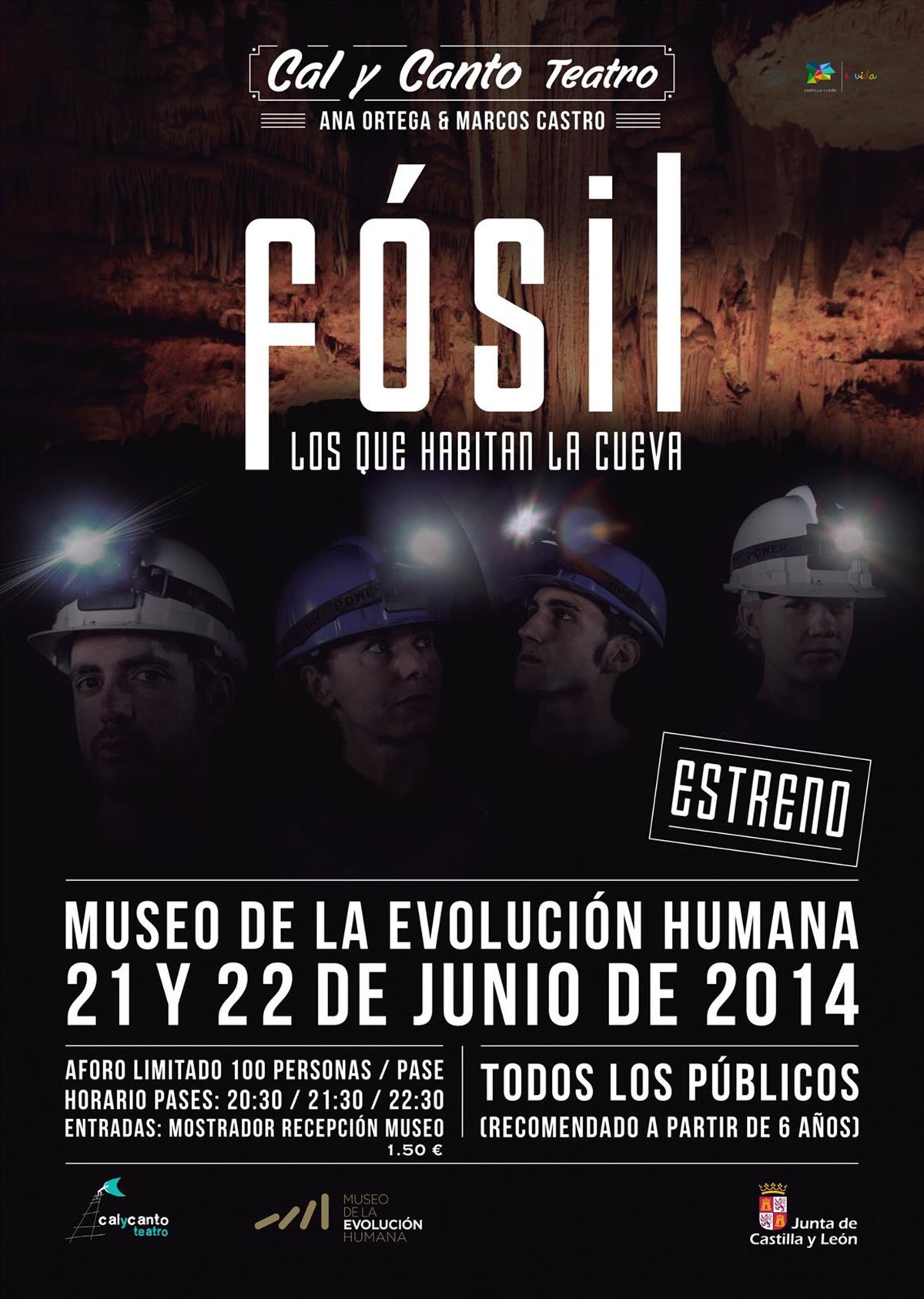 La Compañía de Teatro 'Cal y Canto Teatro' estrena este sábado en el Museo de la Evolución Humana (MEH) de Burgos su última producción 'Fósil. Los que habitan la cueva', una "arriesgada" apuesta teatral que evocará a los primeros espeleólogos e investigadores y que tratará de desvelar los inicios de la vida del hombre.
