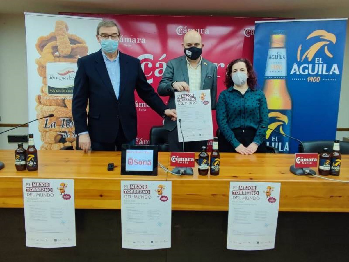 El director técnico de la Marca de Garantía de Torrezno de Soria, Juanjo Delgado; el presidente de la Asociación, Samuel Moreno; y la consejera delegada del Virrey Palafox, Beatriz Martínez, han dado más detalles de esta edición que contará con la colaboración de la Asociación Cultural Gastronómica Soriana y con el patrocinio de la cerveza El Águila.