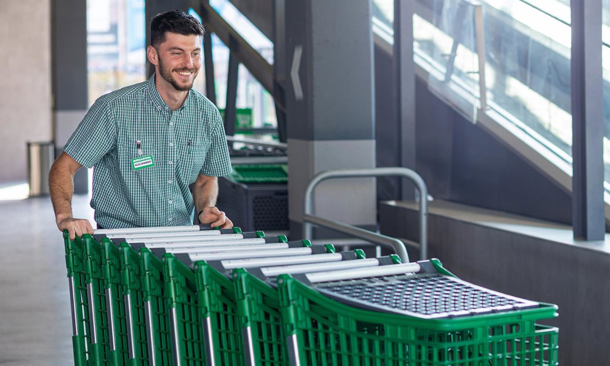 Archivo - Un trabajador de Mercadona coloca los carros de la compra. - MERCADONA - Archivo