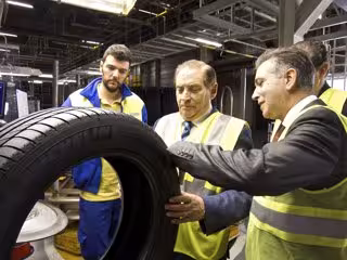 Durante su recorrido por la fábrica, el presidente de la Real Federación, acompañado por el director de la planta de Valladolid, Mariano Arconada, y el director de Comunicación de Michelin España y Portugal, Félix Sanchidrián, se ha mostrado impresionado por los complejos y exhaustivos controles de calidad implantados por Michelin para garantizar los elevados estándares de sus neumáticos, verificados uno a uno.