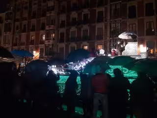 Miles de personas de todas las edades se han congregado, pese al viento y la lluvia, en las calles de la capital vallisoletana para recibir a Sus Majestades de Oriente a lo largo de los casi dos kilómetros que los Reyes Magos y su comitiva han recorrido por el centro de la ciudad.