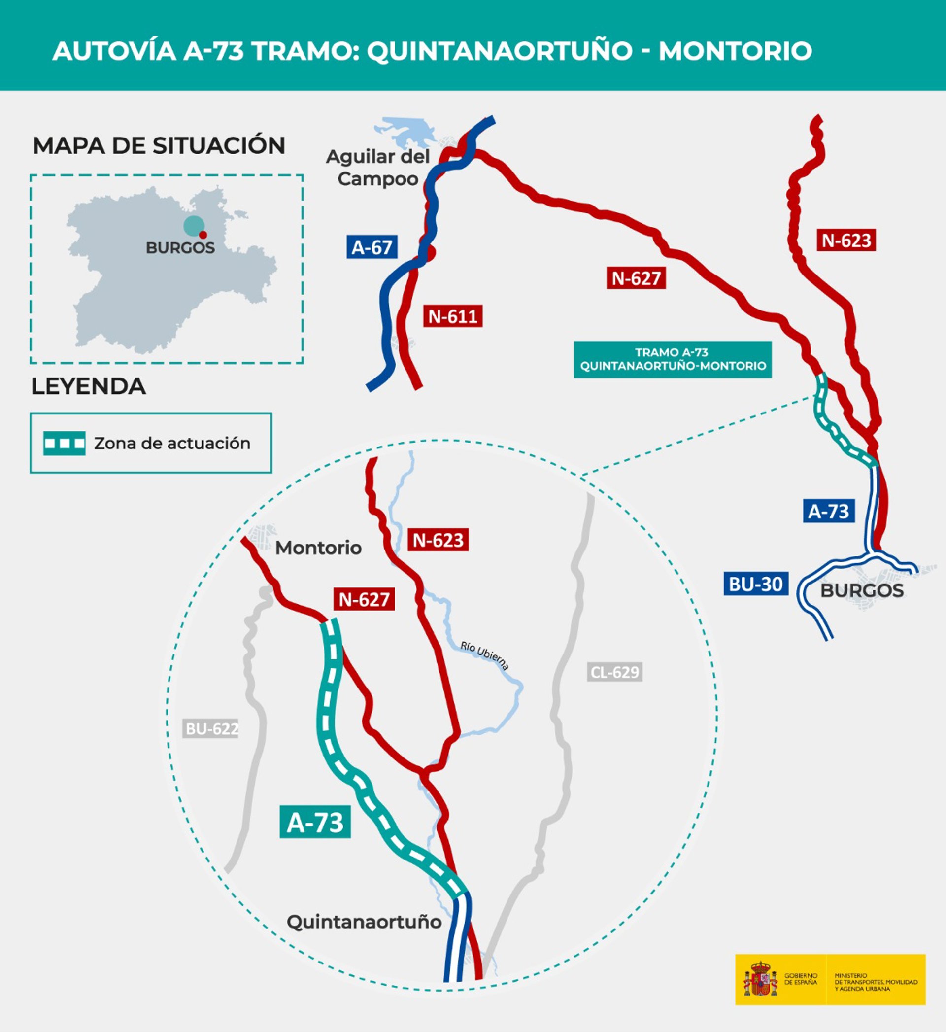 El Ministerio de Transportes, Movilidad y Agenda Urbana (Mitma) ha formalizado, por un importe de 108 millones de euros el contrato de obras para la construcción del tramo Quintanaortuño-Montorio de la autovía A-73, en la provincia de Burgos.