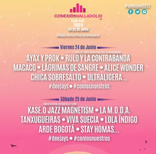 Con este cartel, la promotora del festival subraya que "queda más que conseguido el objetivo" de Conexión Valladolid de "conectar a través de la música" con una "gran diversidad de estilos añadido al ambiente único en el que se presentan lo convierten en uno de los mejores festivales que podremos disfrutar este verano".