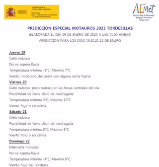 Documento elaborado por la Aemet con la previsión especial para Motauros 2023 - @AEMET_CYL
