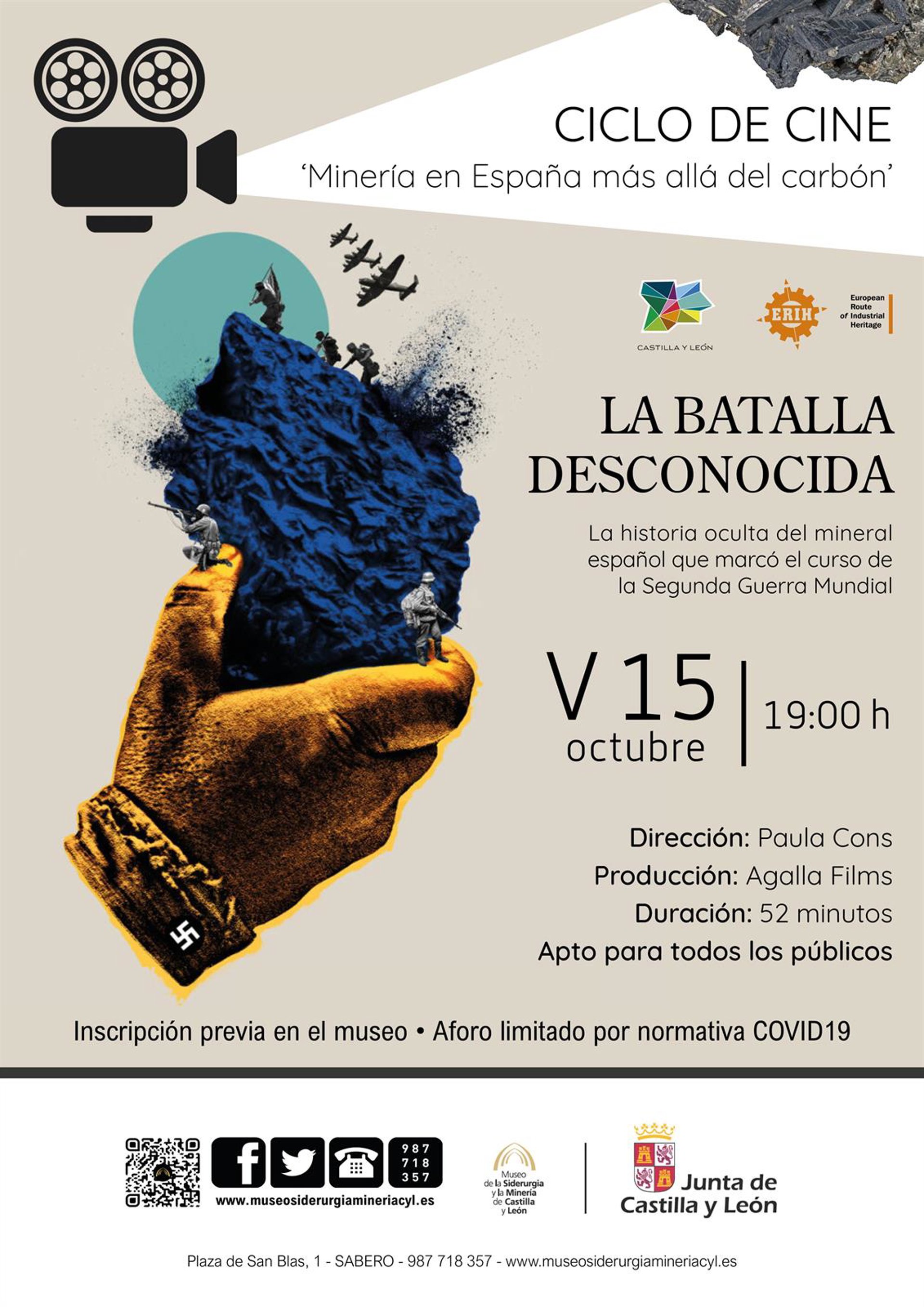 Cartel del ciclo de cine 'Minería más allá del carbón. La batalla desconocida'. - JCYL