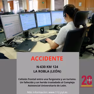 Un muerto y un herido es el balance de un accidente de circulación registrado a las 08.27 horas de este viernes, 24 de febrero, en la carretera N-630 a la altura del término leonés de La Robla, según informa el Servicio de Emergencias de Castilla y León 112 y recoge Europa Press.